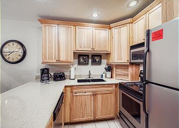 • Inside the unit, you'll find a full kitchen equipped with everything you need for meal preparation.